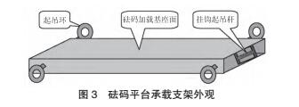 專用砝碼平臺承載支架自重約1.5 t,尺寸約為:長(2.6 m)x 寬(0.60 m)x 高(0.13 m),占地面積均為1.56 m2 (如圖3所示)。