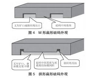 根據承載支架尺寸,兩種不同外觀的扁形砝碼分別為M形和拱形,其標準質量均為1 t,M形尺寸約為:長(1.0 m)x 寬(0.70 m)x 高(0.25 m); 拱形尺寸約為:長(1.0 m)x寬(0.70 m)x高 (0.27 m);占地面積均為0.70 m2 (圖4、圖5)。