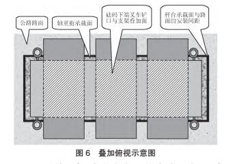 通過組合疊加的方式,將3個M形砝碼分別扣在專用砝碼承載支架上進行組合疊加,不僅可在承載支架的同一水平面上加載3個1 t扁形砝碼,也使扁形砝碼有效利用支架橫向的上、下空間而向外伸展,降低了砝碼疊加的高度。通過合理的疊加,可實現所需量程范圍的加載。疊加俯視圖,如圖6所示。
