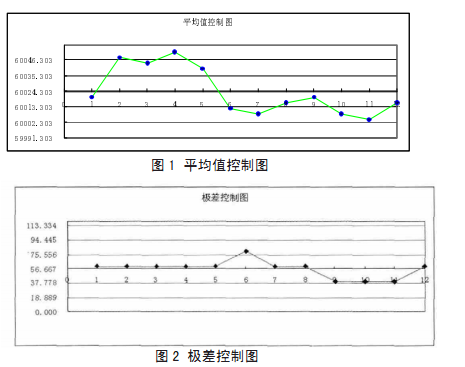 由以上數據分別繪制出如圖1圖2所示平均值控制圖與極差控制圖。