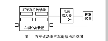 石英式動(dòng)態(tài)地磅主要由石英稱重傳感器、電 荷放大器、稱重儀表、車輛分離裝置等組成。如圖1 所示。