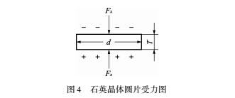 式中:Qx為石英晶體圓片垂直于Fx平面產(chǎn)生的電 荷;dll為石英晶體的縱向壓電模數(shù),dll - 2.31pC/N。