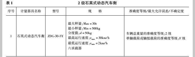廣州根據(jù)多排布 局的石英式動(dòng)態(tài)汽車衡設(shè)計(jì)原理,采用Kistler石 英稱重傳感器,生產(chǎn)的車輛整車總重量的準(zhǔn)確度 等級(jí)為2級(jí)的石英式動(dòng)態(tài)汽車衡(如表1所示), 通過了國(guó)家自動(dòng)衡器型式評(píng)價(jià)實(shí)驗(yàn)室(山東)進(jìn) 行的型式評(píng)價(jià),是國(guó)內(nèi)第一家取得最高準(zhǔn)確度等 級(jí)石英式動(dòng)態(tài)汽車衡型式批準(zhǔn)證書和生產(chǎn)許可 證的廠家。