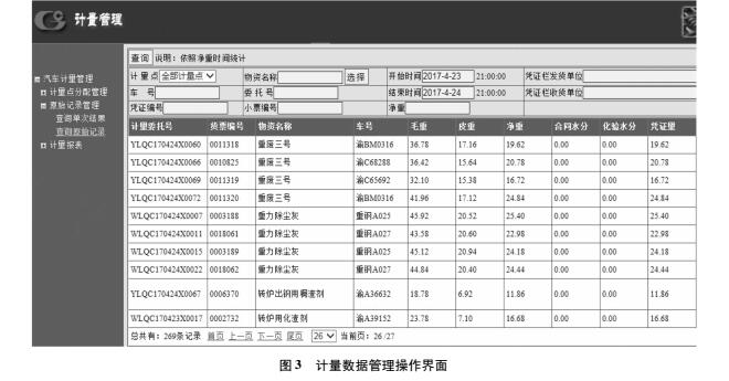 該分系統(tǒng)接收到計(jì)量任務(wù)后,計(jì)量人員通過(guò)界面視頻核對(duì)車(chē)輛信息,檢查計(jì)量委托及計(jì)量類(lèi)型、收發(fā)貨單位等,確保信息準(zhǔn)確后保存數(shù)據(jù),數(shù)據(jù)包含車(chē)輛信息、視頻信息、稱(chēng)重信息等,數(shù)據(jù)同步上傳至中心數(shù)據(jù)庫(kù)。